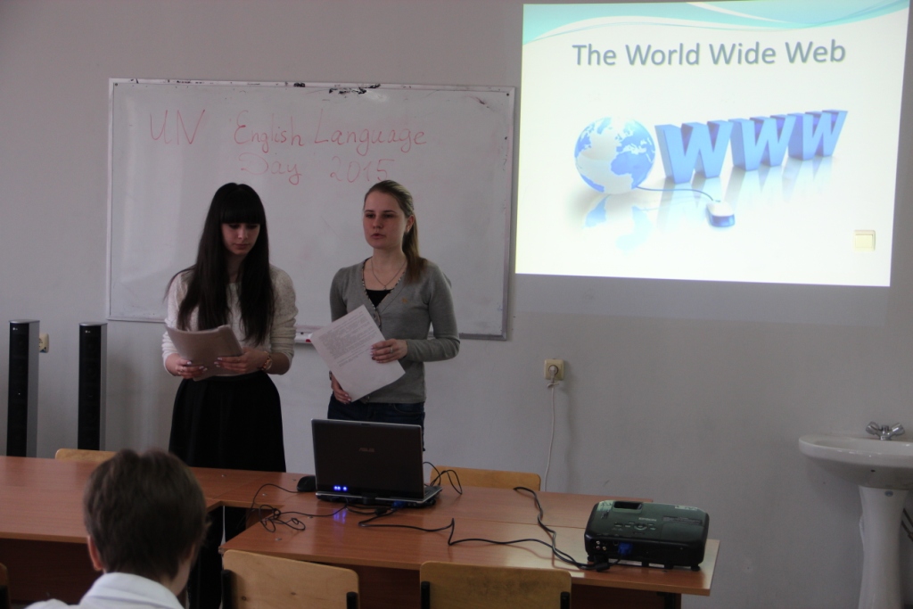 Во время работы англоязычного форума студенты продемонстрировали презентации на темы, связанные с историей и современным положением английского языка в мире. Доклады были посвящены истории международного дня английского языка, распространению английского языка в разных странах, известным дипломатам, писателям, изобретателями, исследователям и т.д. Многие выступления вызвали оживленную дискуссию, в ходе которой наметились темы дальнейших исследований.