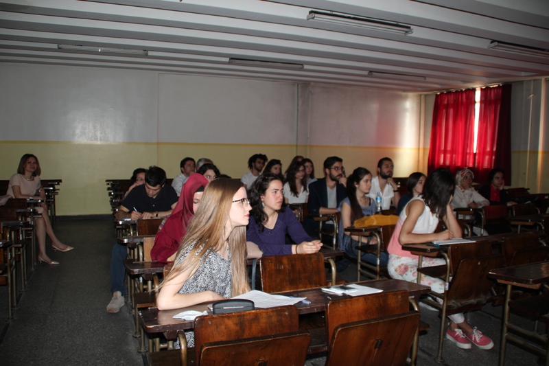 Во встрече приняли участие студенты первых и четвертых курсов факультета, заведующая кафедрой, доцент кафедры русского языка и литературы Лейла Чигдем Далкылыч, доцент кафедры русского языка и литературы Зульфия Шахин, а также преподаватель русского языка и литературы Лариса Арай.