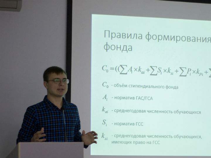 Далее с участниками круглого стола посредством Skype связался председатель Студсовета Высшей школы экономики Дмитрий Овакимян. Он рассказал о проекте по исследованию лучших практик в сфере повышенных государственных академических стипендий (ПГАС) – одном из главных в вузе. Прежде всего, члены этой студенческой организации изучили московские государственные университеты, в которых представлен ОСО. Их работа прошла в несколько этапов: исследование нормативной базы вузов; сбор и анализ положений с целью выявления процесса распределения стипендий; сбор информации и мнений от руководителей ОСО; оценка реального положения дел; исследования студентов; изучение степени доверия к процедуре распределения ПГАС. В результате выяснилось, что в настоящее время существует три системы ранжирования студентов на получение академической стипендии: алгоритмическая («прозрачная» система выставления баллов по чётким критериям для получения стипендии), экспертная (система, в которой возможен индивидуальный подход к каждой заявке на получение стипендии), смешанная («непрозрачная» – в которой критерии для получения стипендии жёстко ограничены).
